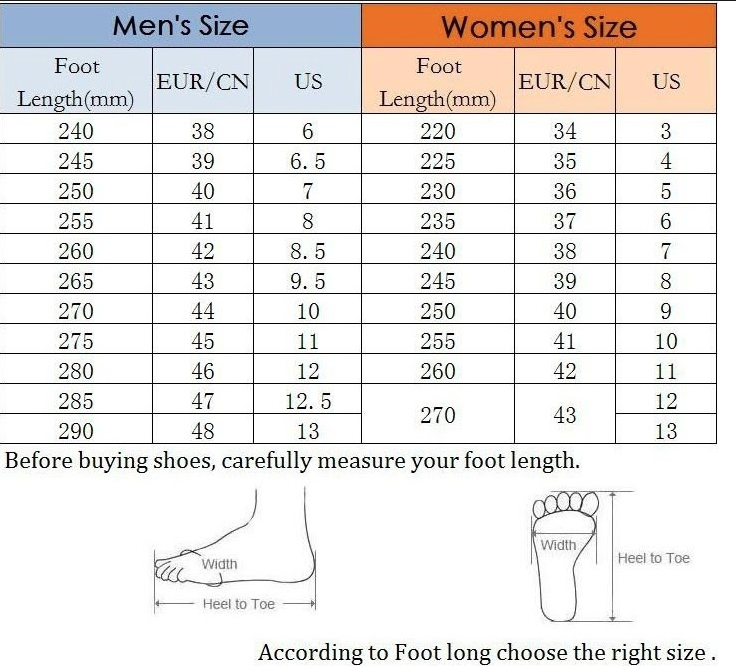 Note: If your feet are too wide, please increase one size, if your feet are too narrow, please order according to the normal size